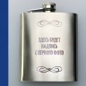 Набор 4 в 1 включает в себя стальную фляжку серебряного цвета (с надписью), что идеально подходит для крепкого или безалкогольных напитков (алкоголя, коньяка, виски, воды и др.).