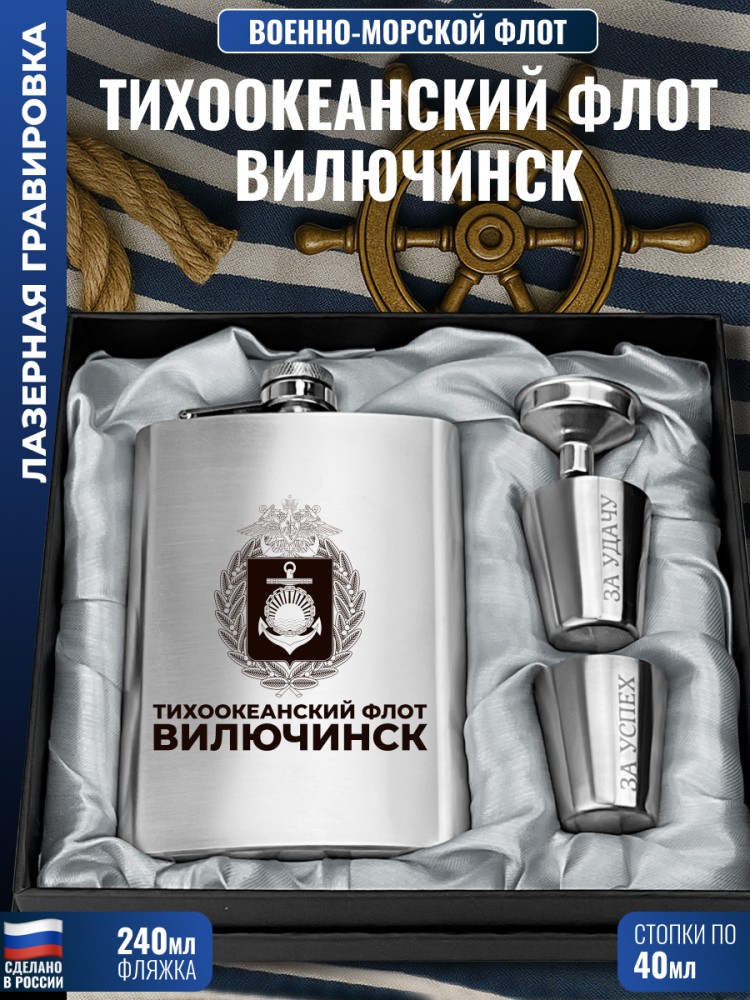 Набор ВМФ "Тихоокеанский флот. Вилючинск" (фляжка, стопки, воронка) - описание товара