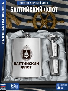 Набор ВМФ герб "Балтийский флот" (фляжка, стопки, воронка) - описание товара