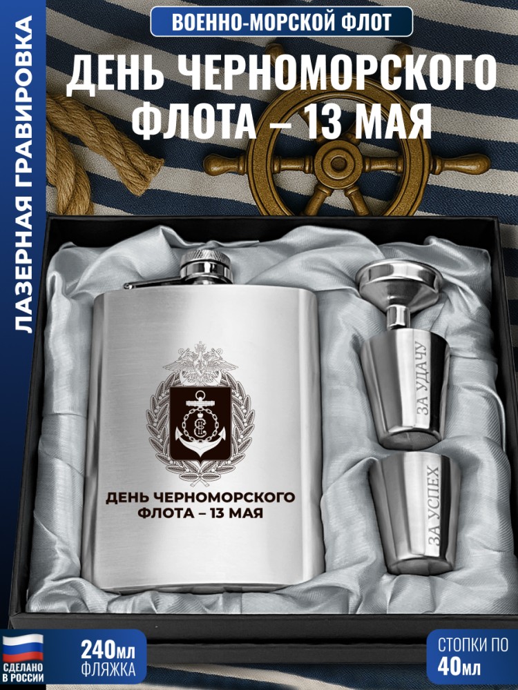 Набор ВМФ "День Черноморского флота – 13 мая" (фляжка, стопки, воронка) - описание товара