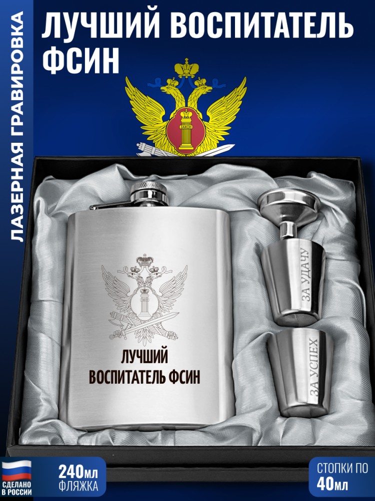 Набор ФСИН "Лучший воспитатель" (фляжка, стопки, воронка) - описание товара