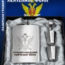 Комплектация: Фляжка, Воронка, 2 рюмки, Коробка с ложементом (19 x 17 x 5 см).