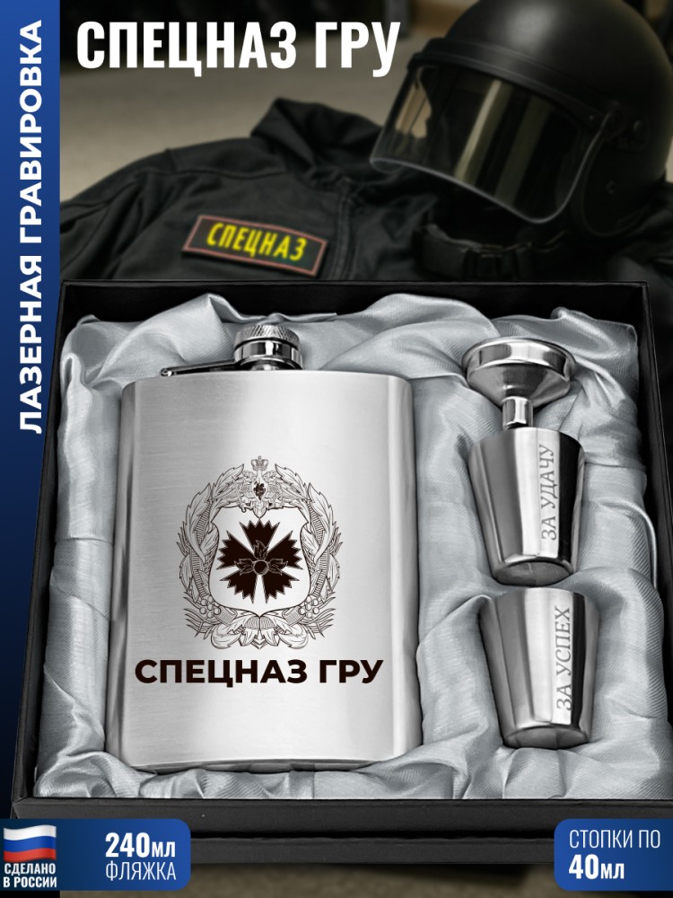 | Комплектация | Фляжка (240 мл), Воронка, Две стопки (по 30 мл) |