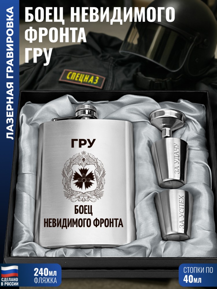 Набор ГРУ гвоздика "Боец невидимого фронта" (фляжка, стопки) - описание товара