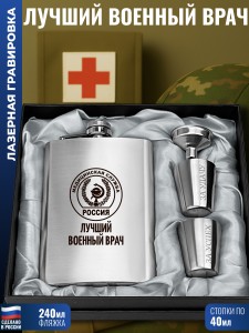 Набор МедСлужба "Лучший военный врач" (фляжка, стопки, воронка) - описание товара