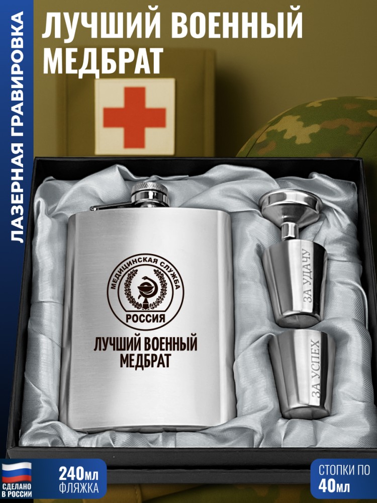 Набор МедСлужба "Лучший военный медбрат" (фляжка, стопки, воронка) - описание товара