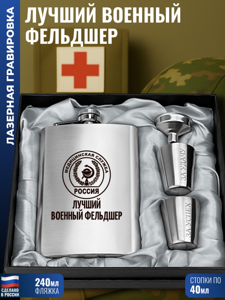 Набор МедСлужба "Лучший военный фельдшер" (фляжка, стопки, воронка) - описание товара