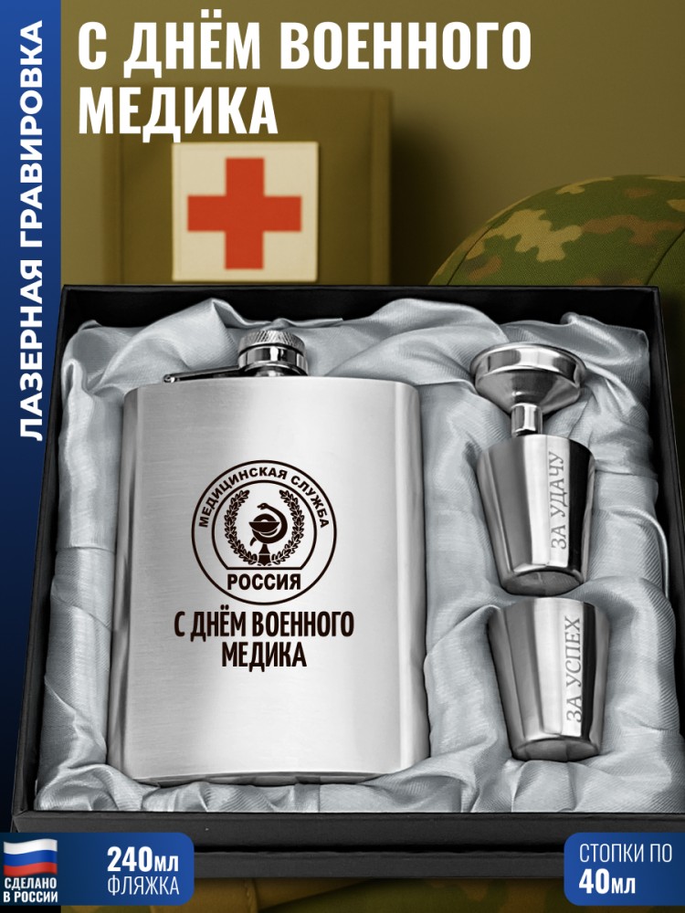 Набор МедСлужба "С днём военного медика" (фляжка, стопки, воронка) - описание товара