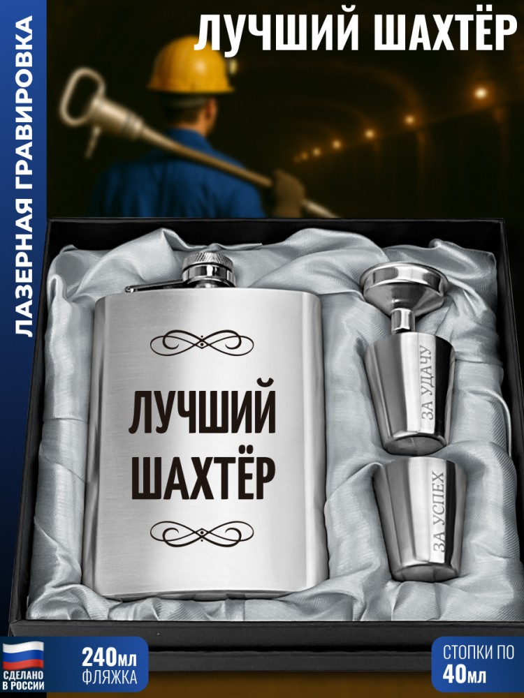 | Комплектация | Фляжка (240 мл), Воронка, Две стопки (по 30 мл) |