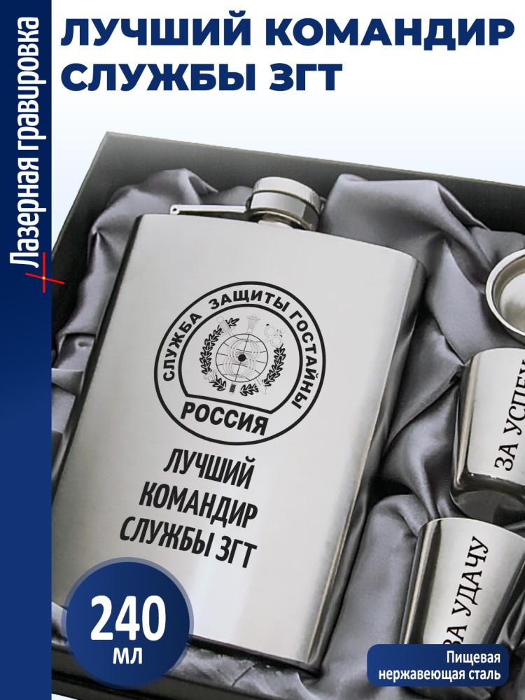| Комплектация | Фляжка (240 мл), Воронка, Две стопки (по 30 мл) |