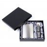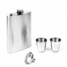 Набор 4в1 включает в себя стальную фляжку серебряного цвета с надписью и герметичным откидным держателем, которая идеально подходит для крепкого или безалкогольных напитков (алкоголя, коньяка, виски, рома, воды и др.), двух рюмок и воронку.