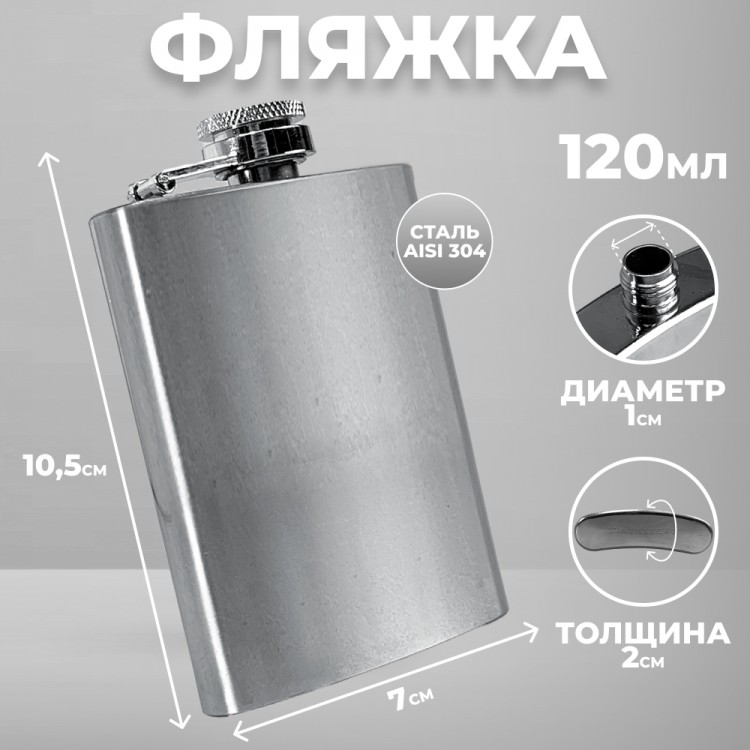 Материал: Пищевая нержавеющая сталь AISI 304 (фляжка), Металл (крышечка), Пластик (крепление крышечки).