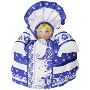 Грелка имеет нестандартную форму, выполненную в виде куклы бабы.