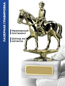 Наградная статуэтка с тематикой конного спорта. Подходит для награждения участников соревнований, выставок и клубных мероприятий. Используется в оформлении витрин и спортивных интерьеров.