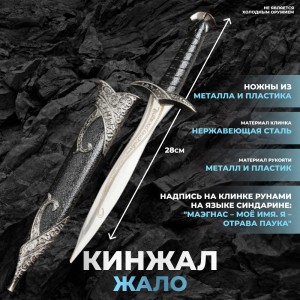 Надпись на клинке рунами на языке синдарине - "Маэгнас – моё имя. Я – отрава паука" Маэгнас это в переводе жало или шершень.
