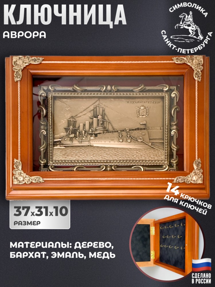 Настенная ключница "Крейсер Аврора" с медным шильдом (37 х 31 х 9 см) - описание товара