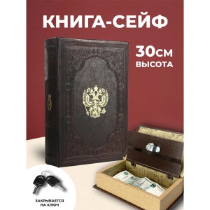 Книга-сейф с обложкой, украшенной изображением двуглавого орла, обеспечивает не только хранение ценностей, но и является стильным элементом интерьера.
