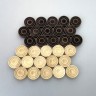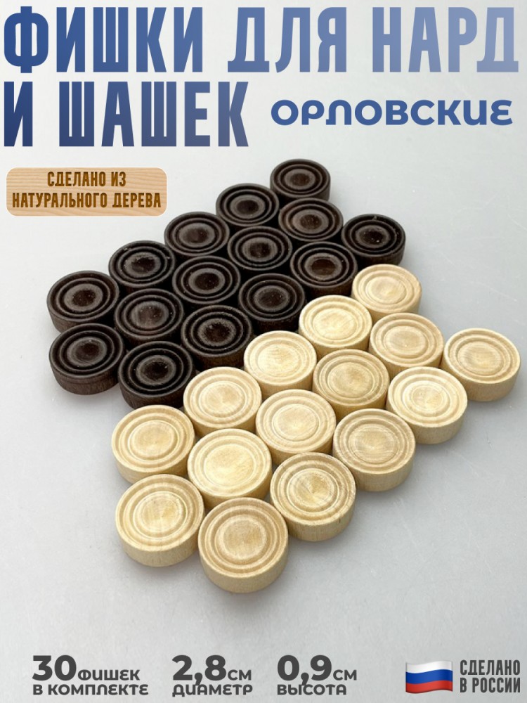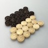 Набор состоит из 15 светлых, 15 тёмных фишек