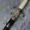 На рукояти кнопка-фиксатор для удержания кортика в ножнах.