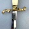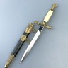 На рукояти имеется кнопка-фиксатор для удержания кортика в ножнах.