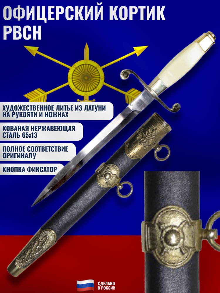 Комплектация: кортик, ножны, сертификат (не является холодным оружием, не требует разрешения на приобретение, хранение и ношение).