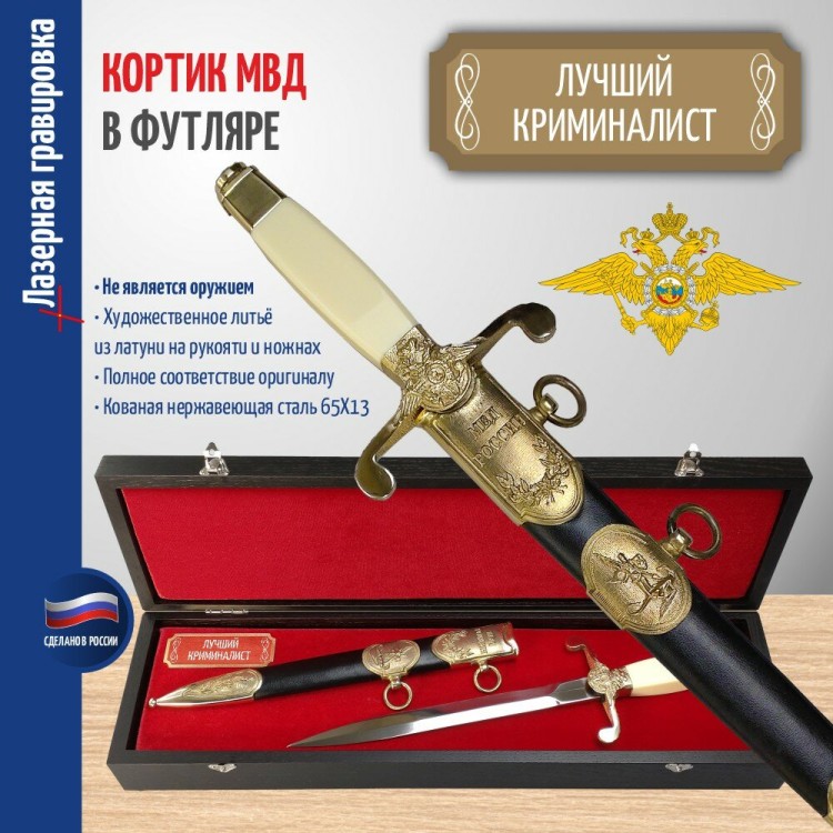 Кортик МВД "Лучший криминалист" в футляре - описание товара