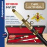 Комплектация: подарочный футляр, кортик, ножны, сертификат (не является холодным оружием, не требует разрешения на приобретение, хранение и ношение).