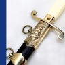 Комплектация: подарочный футляр, кортик, ножны, сертификат (не является холодным оружием, не требует разрешения на приобретение, хранение и ношение).
