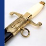 Комплектация: подарочный футляр, кортик, ножны, сертификат (не является холодным оружием, не требует разрешения на приобретение, хранение и ношение).