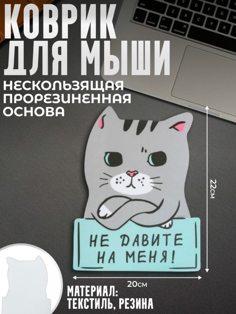 Коврик для мыши "Не давите на меня" с ярким и оригинальным дизайном приносит веселую нотку в рабочее пространство, напоминая о важности легкости и юмора даже в мелочах.