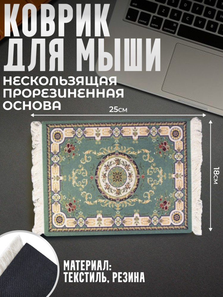 Коврик для мыши "Прямоугольный ковёр" зелёного цвета (25 х 18 см) - описание товара
