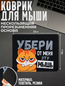 Коврик для мыши "Убери эту мышь" с, изготовлен из текстиля и резины, упакован в полиэтиленовый пакет, представляет собой оригинальный аксессуар для рабочего стола с игривым дизайном.