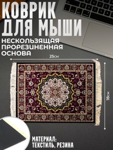 Коврик для мыши "Прямоугольный ковёр" бордового цвета (25 х 18 см)