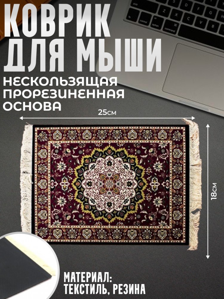 Коврик для мыши "Прямоугольный ковёр" бордового цвета (25 х 18 см) - описание товара