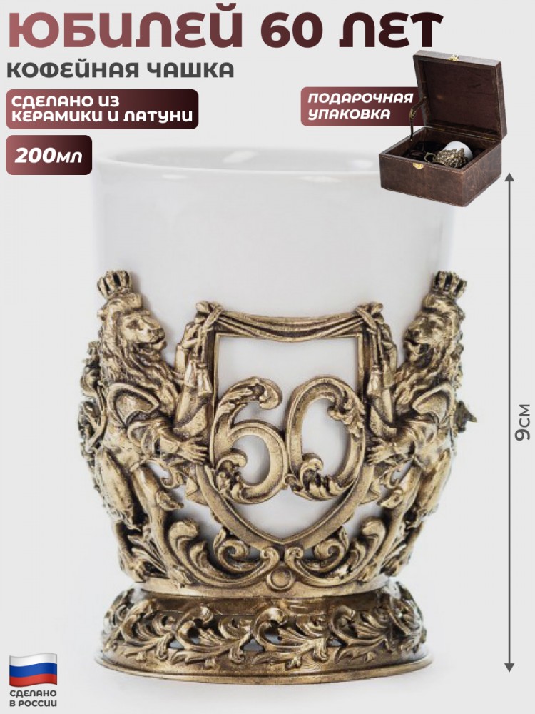 Кофейная чашка "Юбилей 60 лет" из керамики и латуни в футляре (200 мл) - описание товара