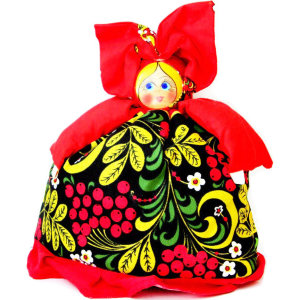 Грелка имеет нестандартную форму, выполненную в виде куклы бабы.