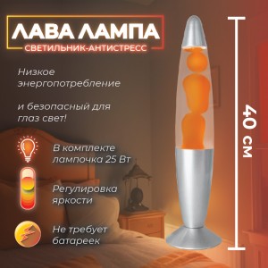 В течение 1 часа после включения воск медленно будет подниматься, а после остывания опускаться. Далее цикл повторяется. Лампу с плавающими пузырями можно оставлять на ночь (рекомендованное время работы 8 часов), остерегайтесь перегрева (парафин скапливается на поверхности или распадается на маленькие гранулы. Если вы это заметили, нужно выключить лавовый светильник и дать ему остыть. После остывания лавообразной жидкости она может стать немного мутной, при повторном нагреве этого не будет. Есть диммер (регулятор яркости) при помощи его можно менять уровень света и нагрева. Поставляется в разобранном виде. . Восковая настольная лампа горячая, стоит избегать прикосновений к стеклянному корпусу руками, это может привести к ожогам.