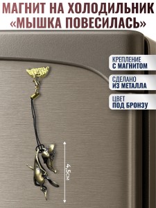 Прикольный магнит на холодильник мышка повесилась. Фигурка выполнена из прочного и тяжелого металла с высокой степенью детализации. Суть шутки состоит в поверье о том, что мышь с голодухи вешается в пустом холодильнике от разочарования, что в нем нет еды.