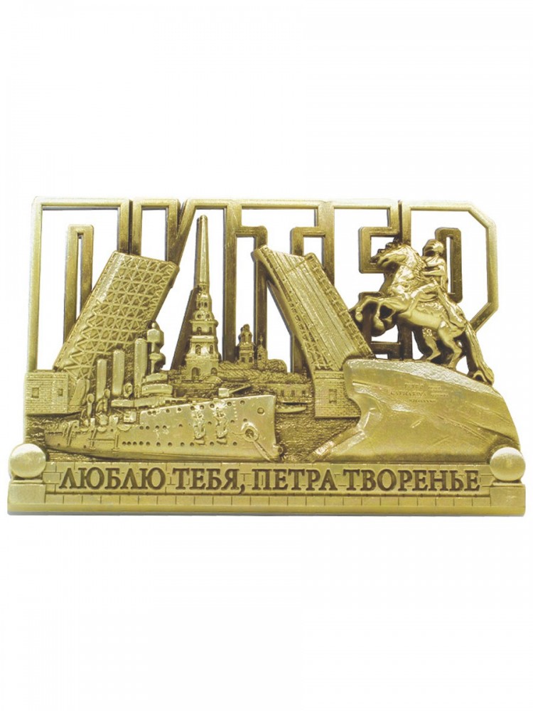 Магнит бронзового цвета с надписью «Любимый Питер» станет напоминанием о теплых чувствах к этому городу, окутанному аурой тайн и романтики.