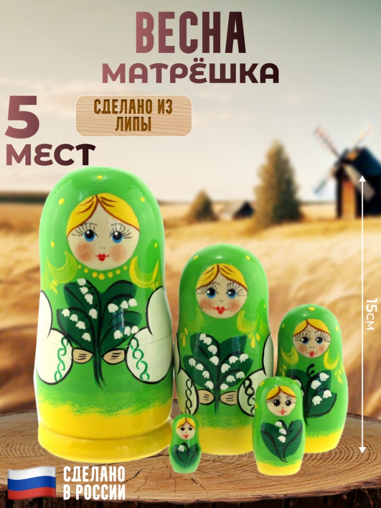 Матрёшка "Весна" из цикла "Времена года" (5 мест, 15 см) - описание товара