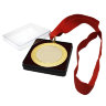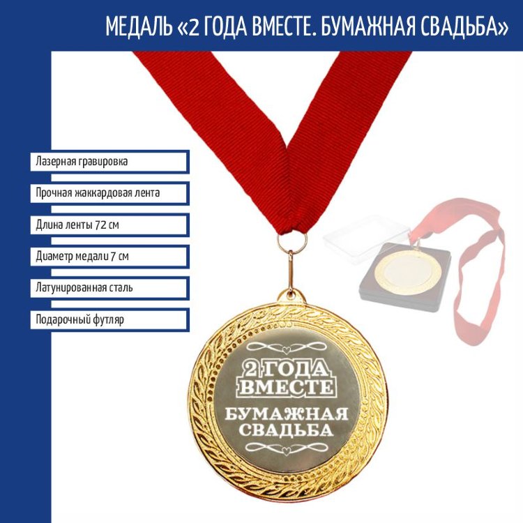 Комплектация: Медаль (Латунированная сталь), Жаккардовая лента, Подарочный футляр.