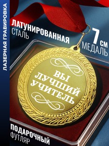 Лазерная гравировка нанесена с лицевой стороны медали. Комплектация: Медаль (Латунированная сталь), Жаккардовая лента, Подарочный футляр. Подложка (ложемент) в коробочке с бархатным покрытием (флокированием). Размер упаковки: 8,5 x 8,5 x 2 см. Размер медали: 7 x 7 x 0,3 см. Длина ленты: 72 см. Ширина ленты: 2,5 см. Крепление к ленте на маленьком металлическом карабине. Вес медали с лентой: 65 г. Наградные медали и ордена золотого цвета символизируют не только личные достижения и успехи, но и благодарность за труд и преданность своему делу. Такой знак отличия всегда найдет свое почетное место в доме или офисе и будет стильным украшением на празднике. Идеальный подарок учителю любого уровня образования - от педагога начальных классов до преподавателя старшеклассников. Порадует классного руководителя, наставника и учительницу (в школе или учебном заведении). Особенный выбор для важных школьных событий: выпускной, последний звонок, 1 сентября или День учителя (5 октября). Подойдет для выражения благодарности от выпускника училища, ученика школы или целого класса и их родителей (родительский комитет). Универсальное решение для признания заслуг в образовании и обучении. Оценят как опытный педагог или репетитор с многолетним стажем, так и молодой преподаватель-наставник, работающий с младшеклассниками. Станет памятным презентом для всех, кто связан с передачей знаний и воспитанием. Поможет выразить искреннюю признательность любимой учительнице - от благодарных учеников до коллег. Красивый способ отметить вклад лучшего педагога в школьный праздник или учебный процесс техникума, в том числе и в гимназии, академии, колледже или лицее. 1485