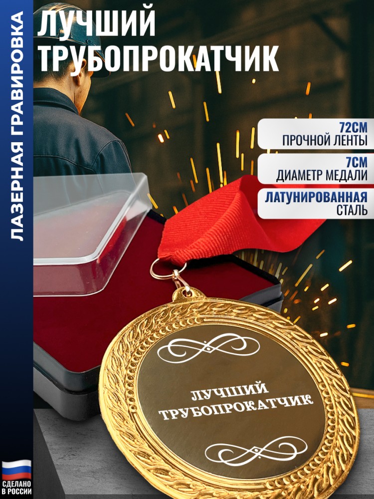 Комплектация: Медаль (Латунированная сталь), Жаккардовая лента, Подарочный футляр.