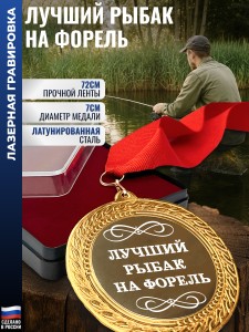 Сувенирная медаль "Лучший рыбак на форель" на ленте (7 см) - описание товара