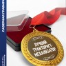 Комплектация: Медаль (Латунированная сталь), Жаккардовая лента, Подарочный футляр.