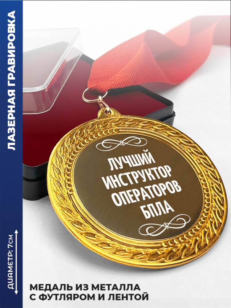 Комплектация: Медаль (Латунированная сталь), Жаккардовая лента, Подарочный футляр.