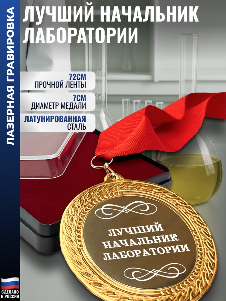 Сувенирная медаль "Лучший начальник лаборатории" на ленте (7 см) - описание товара