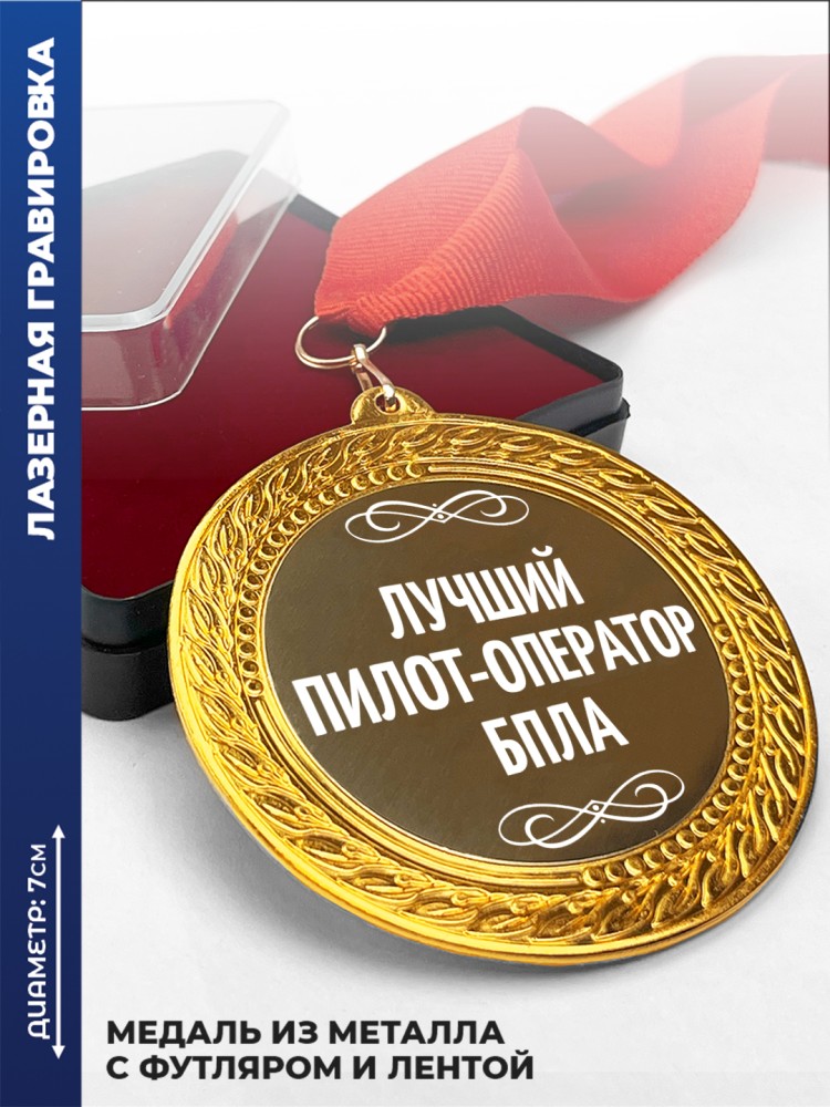Комплектация: Медаль (Латунированная сталь), Жаккардовая лента, Подарочный футляр.