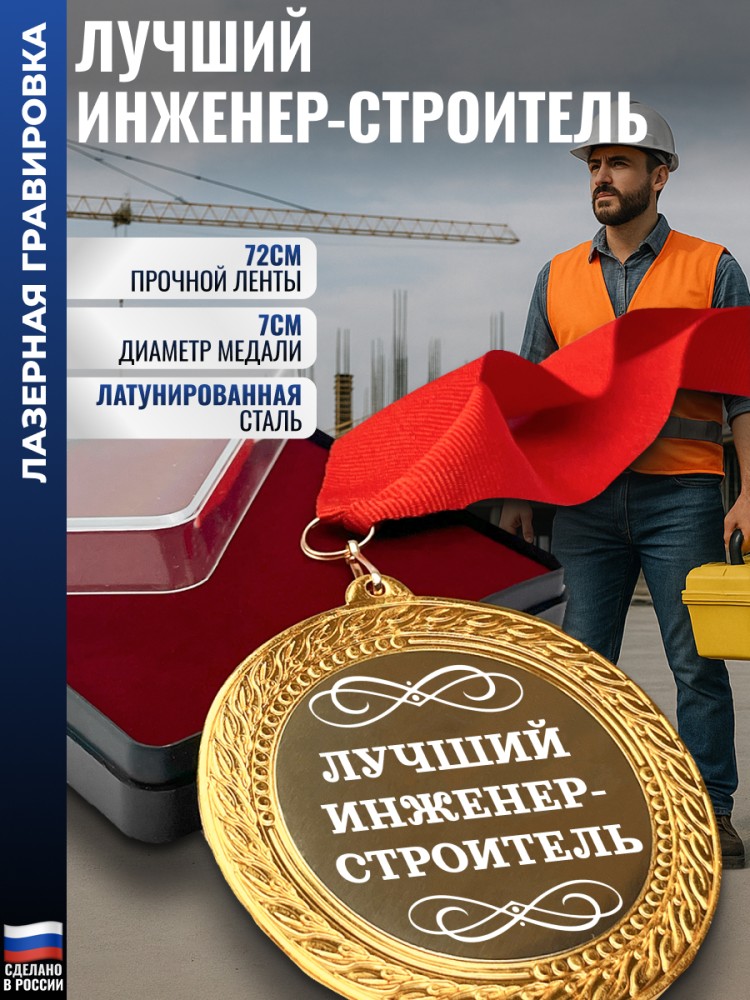 Сувенирная медаль "Лучший инженер-строитель" на ленте (7 см) - описание товара