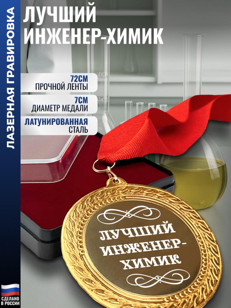 Сувенирная медаль "Лучший инженер-химик" на ленте (7 см) - описание товара